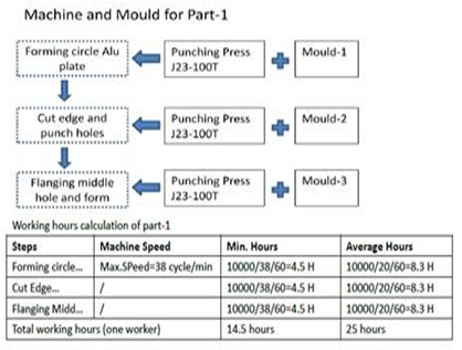 1. You have to make quotation with process flow diagram showing all steps with required machine for these four metal parts separately.
