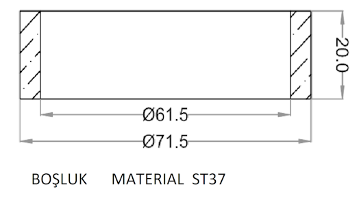 ST37 malzemesinden 5 mm et kalınlığında 20 mm genişliğinde boşluk parçası