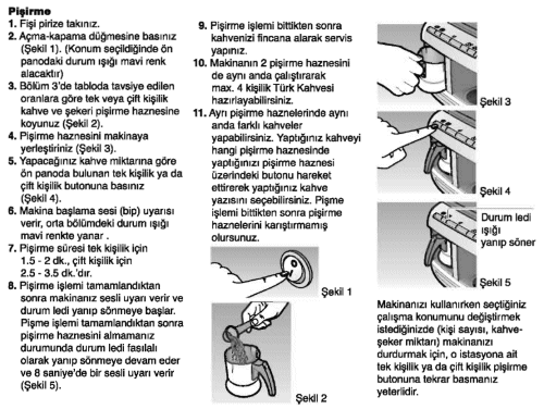 tatta kahve yapabilme olanağı sunuyor. Sade, az, orta ve şekerli