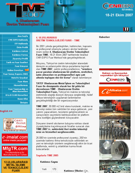 TIME 2007 Fuarı web sitesinde e-imalat.com ve MfgTR.com logoları.