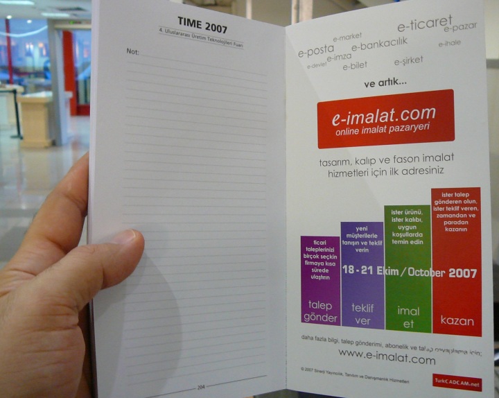 TIME 2007 Fuar kataloğu arka kapağında e-imalat.com reklamı