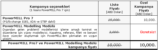 kadar sürecek PowerMILL CAM yazılımı için avantajlı kampanyalar