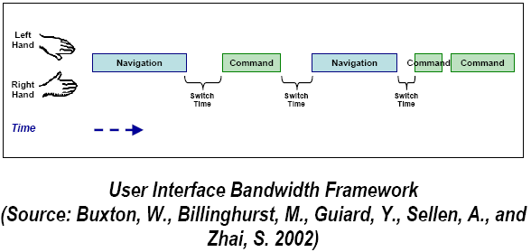 Bu taslak, kullanıcı arayüzlerinin (bugün ve yakın gelecekte) sağ ve sol elle, hem navigasyon yapıldığını hem de komutların girildiğini açıklar. Kullanıcı arayüzü bant genişliği basitçe, özel bir uygulama fonksiyonunu gerçekleştirmek için, bir seri navigasyonu ve komutu uygulamak için geçen zamandır.