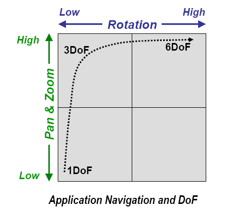 Bu, aslında tipik 3D uygulamaları olan, simültane DoF sunan araçlar için- 6 DoF'a kadar, potansiyel olarak yüksek zoom ile uygulamalara erişim, pan ve yüksek değişim ifade eder.