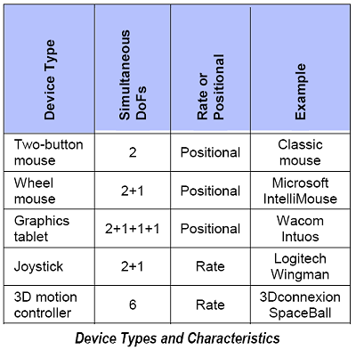 Diğer taraftan, scrool'lu mouse'un 2+1 DoF'lu kapasitesi, 6DoF'lu aletinkine ulaşabilmek için, ilave bir tuşa basılmayı gerektirir. Genel olarak şöyle olur;