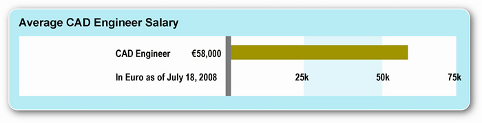 Çalışan çıkarları (izin, sağlık sigortası vb), temel maaşın %25'i olarak tahmin edildi, bu da çalışanın haklarıyla beraber bir CAD tasarım mühendisinin toplam yıllık maaşının 72.000 Euro civarında bir rakam göstermekte.
