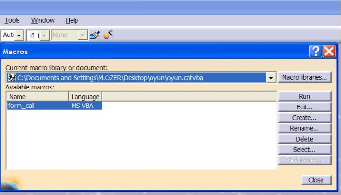 VB uygulamaları son CATIA kullanıcıları tarafından kullanılırken,