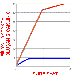 yatak ile kullanılmayan yatak arasındaki sıcaklık yükselmesindeki