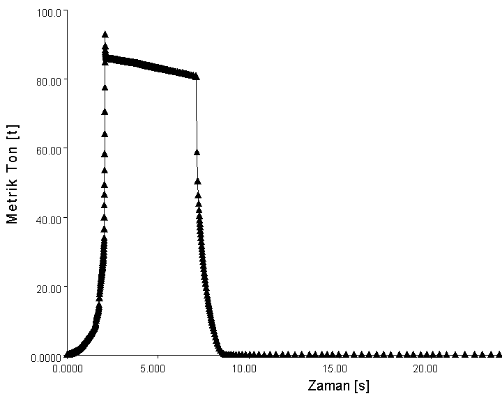 Dolum süresince enjeksiyon basıncı, hızı sabit tutmak için değişmektedir. Bu durumda kalıbın hareketli kısmına etki eden, kalıbı açmaya çalışan kuvvet de değişmektedir. Bu kuvveti dengeleyen kapama kuvvetinin zamanla değişimi Resim 19'de görülmektedir.