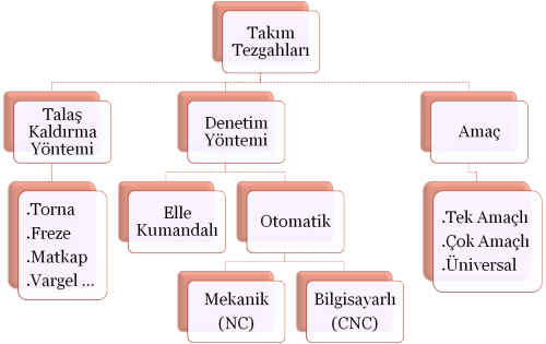 Aşağıda, takım tezgahlarına ait sınıflandırma bir bulunmaktadır;