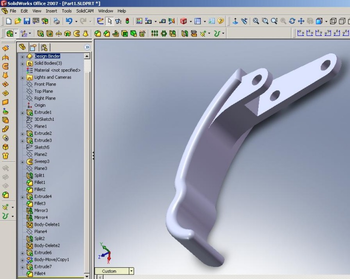 Şekil 3: Tasarlanan kapı kolunun SolidWorks'teki görüntüsü