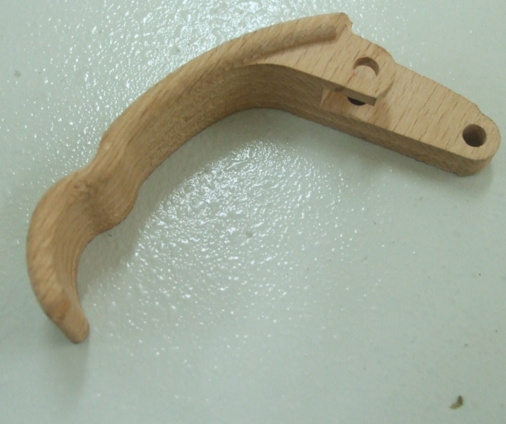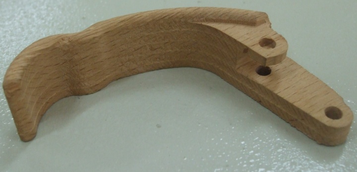 Modelin üretiminde önce kolay işlenebilirlik özelliği ile ahşap malzeme kullanılmıştır. Ahşabın mengenede ezilmesinden dolayı ikinci aşamada sıfırlama sorunu yaşanmıştır. İlk aşamanın işlenmiş hali Şekil 8'de görülmektedir.