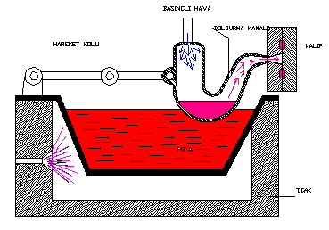 sıvı metal, kaz boynundan kalıba yüksek basınçlı bir hava