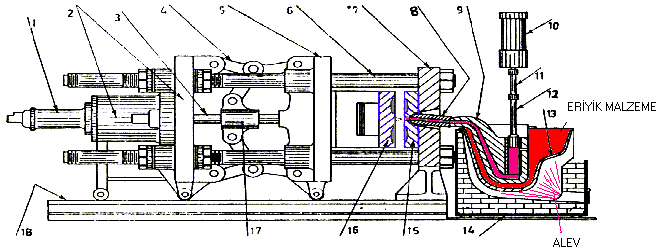 ile doldurulur. Bu tip makinelerda kalıba sıvı metalin doldurma