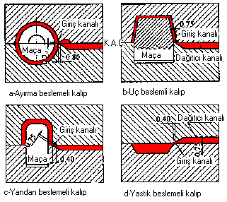 Şekil 9. Giriş kanallarının kalıp üzerindeki tipik konumları