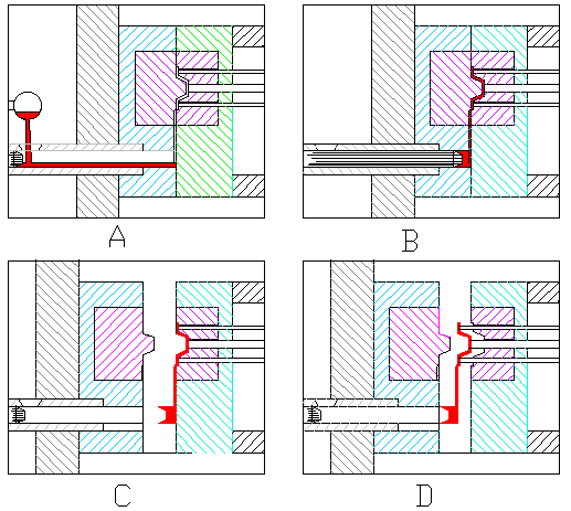 Doldurulması B-Metalin Basılması C-Kalıbın Açılması D-Parçanın