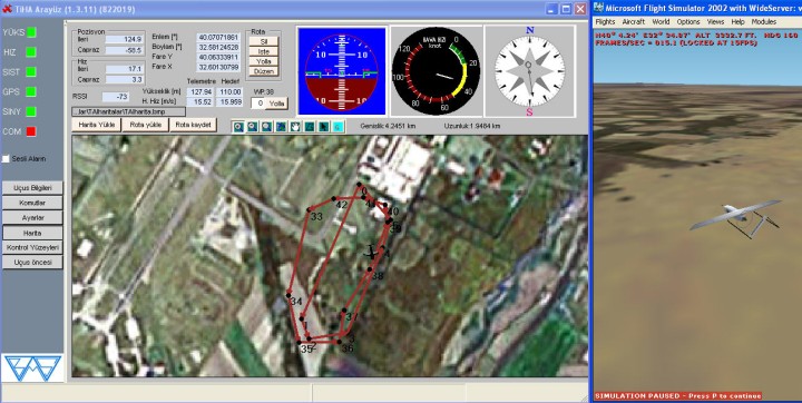 Yer sistemlerinde de yine güvenilir olması açısından gerçek zamanlı çalışan mikrodenetleyici tabanlı yer kontrol bilgisayarı ve buna bağlı olarak kullanıcı arayüzün çalıştığı bir laptop PC, manüel kumanda bulunmaktadır. Uçak hava uçarken kullanıcı arayüz üzerinden takip edilebilip, çeşitli uçuş bilgilerini (Yükseklik, Hız, Enlem, Boylam vb.) ve donanım durum bilgilerini gerçek zamanlı olarak takip edebiliyoruz. Yine dijital harita üzerinden yeni uçuş rotaları çizip uçağa uçuş esnasında yükleyebiliyoruz. Ayrıca geliştirdiğimiz arayüz yazılımı ile bu bilgileri Microsoft Flight Simulator programı ile entegre ederek, uçuşu 3 boyutlu olarak da izleyebiliyoruz. Bunun yanı sıra geliştirdiğimiz dijital görüntü arayüzü ile uçaktan gönderilen resimleri koordinatları ile birlikte izleyip, uçak üzerinde bulunan tek eksende hareket etme kabiliyetine sahip kamerayı bu arayüzden kontrol edebiliyoruz.