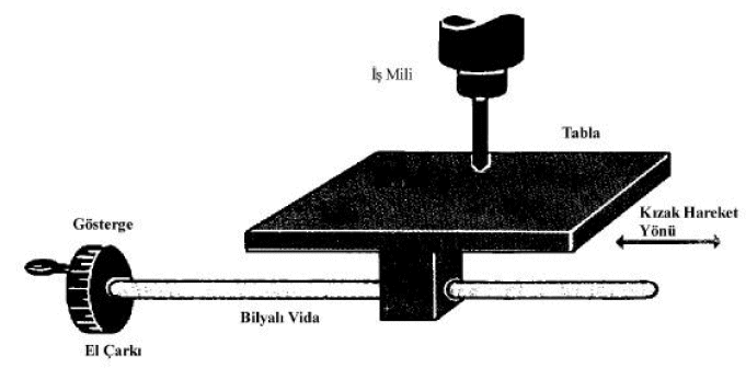 Şekil 1'de konvansiyonel bir takım tezgahında tabla hareketinin