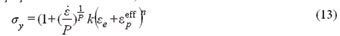 σo iç akma gerilmesi, εpeff etken plastik birim
