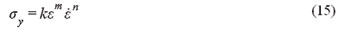 burada k malzeme katsayısı, m pekleşme katsayısı, n birim