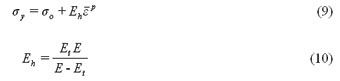 şekil değiştirme ve Ep ise plastik pekleşme modülüdür, ve