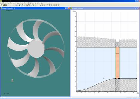 İkinci aşamada fanın çizimi yapılmalıdır. Axcent programı Fanpal datalarını kullanarak fanı otomatik olarak çizebilmektedir (Şekil 2). Daha sonra fan kanadına fan gürültüsünü azaltacak yeni şekiller verilebilinir.