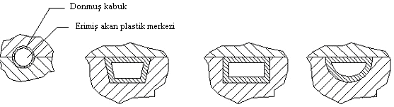- İçine enjekte edilen ergitilmiş plastiği soğuyup sertleşene kadar muhafaza etme.