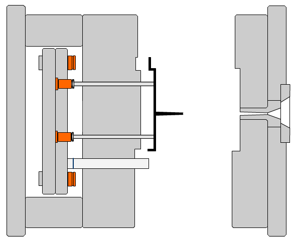 Yolluğun açık olan alt kısmına doğrudan doğruya yerleştirilmiştir. İtici sistem ürünü kalıptan ayırdıktan sonra yolluktaki malzemenin burçtan dışarı çekilmesinde kullanılır.