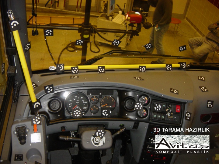 Farklı ters açılardan dolayı yaklaşık 0,5 m2 yüzey alanına sahip bu parçanın kalıbı 3 parçalı olarak tasarlanıp üretildi. Üzerine hava nozulleri, kumanda paneli gibi parçaların bağlandığı kompleks geometrilere sahip bu Gösterge Paneli, aracın ön kısmındaki ön göğüs, torpido, kilometre saati gibi parçaları ve bu parçaların taşıyıcı yapılarını birbirine bağlayacak bir tamamlayıcı parça görevini görmektedir. Dolayısıyla parça üzerinde boyutuna göre çok fazla miktarda bağlantı elemanı bulunmaktadır. El yatırması teknolojisi ile parçaya lamine edilen bu bağlantı elemanlarının gerek konumları gerekse fonksiyonelliği, araca montaj sırasında beklentileri karşılamakta yetersiz kaldı. Ayrıca açık kalıpta üretilen el yatırması ürünlerin manuel olarak trimlenmesinden dolayı araç şoförlerinin her zaman gözünün önünde olan bu parçadaki görsel beklentileri karşılamakta da zaman zaman yetersizlikler gözlendi...