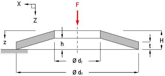 Taşıt kavramalarında kullanılan diyafram yay yapı itibariyle, Belleville yayı ya da disk yay olarak bilinen makine elemanının özel bir halidir. Şekil 4'te görüldüğü gibi, diyafram yayda disk yaydan farklı olarak, esnekliğin artırılması için radyal yarıklar bulunmaktadır. Disk yayda, yay ekseni Z boyunca belirli bir z sehimi oluşturabilmek için uygulanması gereken kuvvet F,