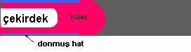 Kalıpta hareketli taraflar aynı tasarlanır. Ancak sabit taraf tasarlanırken profile göre değişik tasarlanmak zorundadır. Yukarıdaki parçayı ele alacak olursak kalıbın bir gözünde kırmızı renk ve diğer tarafında gri renk basılacaktır. Kırmızı renk plastiğin kendi sınırlarını aşmaması için sınırlayıcılar tasarlanır.