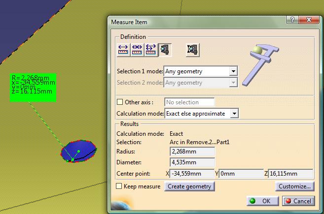 Resim 6. Açılı yüzeye tam teğet istenen çapta temsili parmak freze çizimi