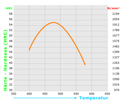Bunlardan takım çeliğimiz 54 HRC'ye kadar yüksek sertliklere