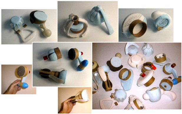 Barkod okuma cihazları tasarım sürecinden tipik bir görüntü. 3 boyutlu köpük modeller tasarım süreci açısından sürekli ergonomi testi yapmaya çok yatkındır.