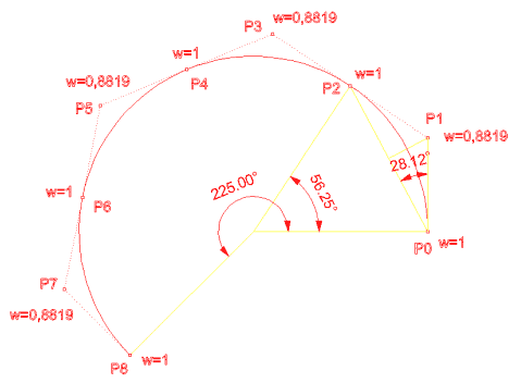 ise 0.5 tir. Bu eğri gerçekte eliptik bir yaydır. Eğri segmenti