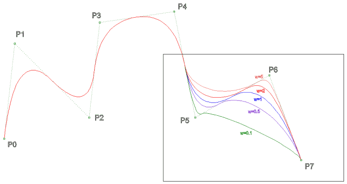 ve Bezier eğrileri NURBS eğrilerinin özel bir halidir. Ayrıca