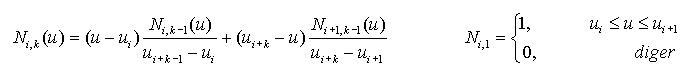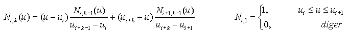 Ni,k : B-Spline temel fonksiyonu