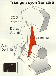CCD kameraları, laserden belli uzaklıkta olan parça üzerinden yansıyan laser ışınının ışığını yakalamaktadır. Laser çizgisinin X,Y,Z koordinatları trigonometrik olarak hesaplanabilmektedir.
