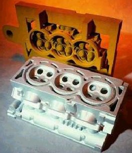önde ise dökümle elde edilmiş metal parça görülmekte.
