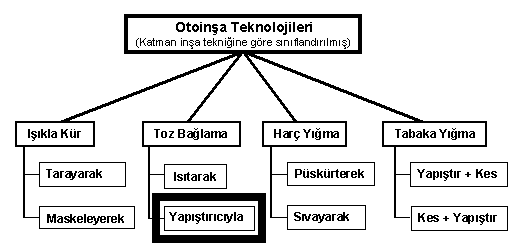 memeden yapıştırıcı püskürtülerek tozlar birbirine bağlanır.