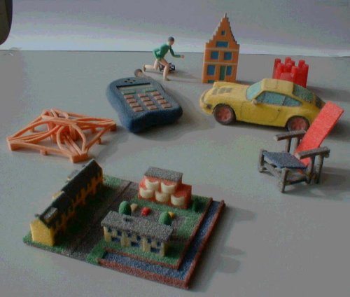 bu cihazla üretilmiş çeşitli renkli modeller, sağda