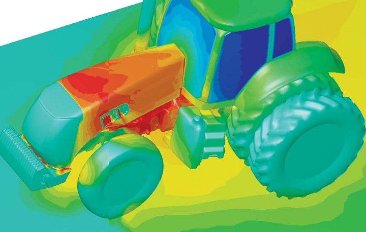 Şekil 6'da Case New Holland firması tarafından yapılan bir traktör üzerindeki sıcaklık dağılımı görülebilir. Isı transferi ve soğutma, yüksek güç üreten ancak düşük hızlarda hareket eden traktör gibi araçlar için ayrıca problemlidir. Düşük hızlarda soğuma için gerekli olan hava elde edilemediği için aşırı ısınmalar söz konusu olabilir.