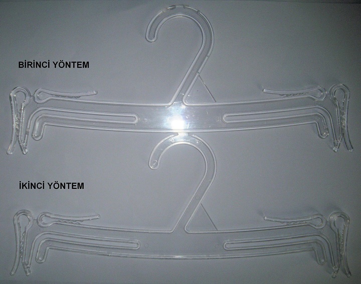 Parçanın fonksiyonu gereğince, dişlerin olduğu yerlerde yaylanma özelliğinden yararlanılması gerekir. Birinci yöntemde kalıp soğutması yapıldığı için parçanın ütülenme devresi iyi gerçekleşmiş ve kalıptan çıktıktan sonra yaylanma fonksiyonunu yerine getirmek üzere dişler birbirinin içine geçerek sıkma kuvveti oluşturmuştur. İkinci yöntemde ise su kanalına soğutma suyu gönderilmeden enjeksiyon yapılmış ve birinci yöntemle aynı çevrim süresinde parça kalıptan çıkartılmıştır. Kalıp soğutulması yapılmadığı için ütülenme devresi tam gerçekleşmeden parça kalıptan çıkartılmış ve ütülenme devresinde parçadan alınması gereken ısı miktarı kalıp içinde değil atmosfer ortamında parçayı terk etmiştir. Bu yüzden yaylanma özelliğine sahip olması gereken kollar genişlemiş halde soğumuş ve yaylanma fonksiyonunu alamamışlardır. İki parça arasındaki farkı resme yakından bakarak görebiliriz.