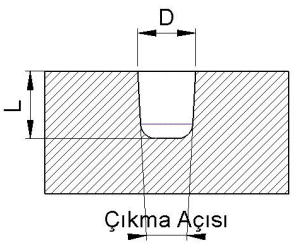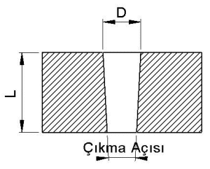 1: Çıkma açısı verilen deliklerde, ürün kalıptan çıkarılmaya