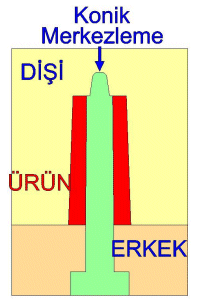 edilirler. Kalıp çekirdeği içerisindeki erkek pimler, nihai