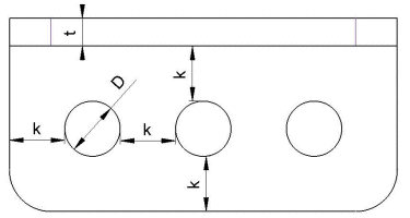 k= deliklerin kenarlardan ve birbirlerinden uzaklıkları, (k,