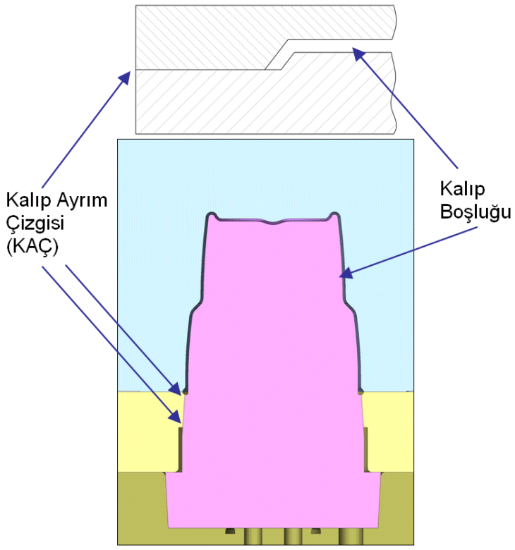 Kalıp yarımlarının açılıp kapandığı ve kalıplanan ürünün açılma düzlemi üzerinde meydana gelen çizgiye "kalıp ayrım çizgisi (KAÇ)" denir. Plastik enjeksiyon kalıplarında en az bir veya daha fazla kalıp ayrım çizgisi bulunabilir.