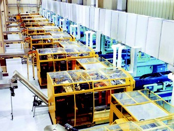 sahip 8 adet plastik enjeksiyon makinesi, paralel olarak yerleştirilmiştir.