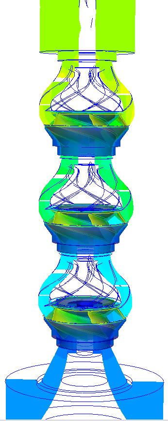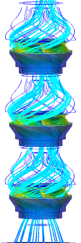 Bu çalışmalar halen Layne Bowler'de CFdesign ile tek veya çok kademeli düşey milli ve dalgıç pompalarda (Şekil 2 ,3 ve 3-a), tıkanmaz pompalarda (Şekil 4 ve 4-a) ve girdap pompalarında sürdürülmektedir.