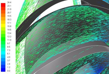 Renklendirme hız büyüklüğüne göre (m/s)